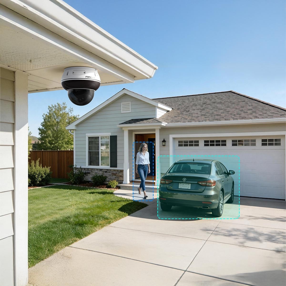 Die Integrierte KI-Personenerkennung und Fahrzeugerkennung unterscheidet zuverlässig zwischen Personen, Fahrzeugen und irrelevanten Bewegungen. Alarme werden per E-Mail, FTP oder Foscam App ausgelöst. Fehlalarme durch Tiere oder Umwelteinflüsse werden deutlich reduziert.